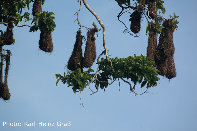 Nester des Montezuma - Stirnvogel (Montezuma Oropendola) (Psarocollus montezuma)