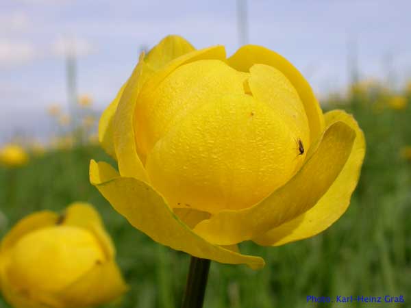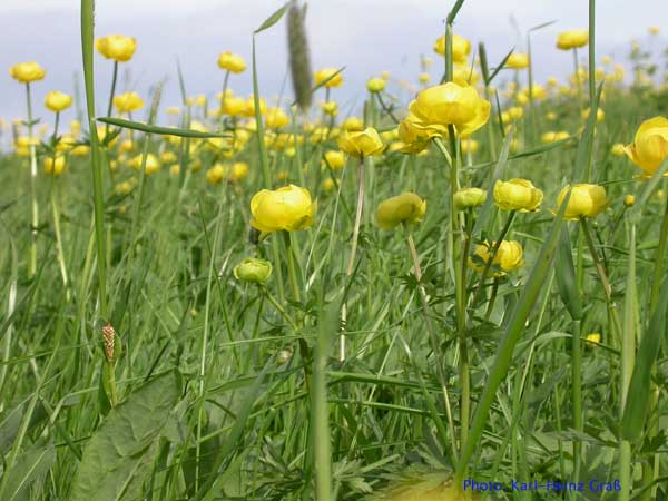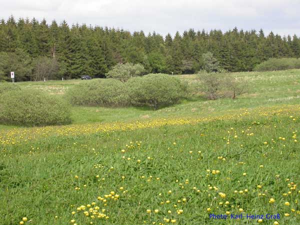 Im Mai fängt es im Biosphärenreservat an, üppig zu blühen. dabei kann es aber auch noch noch recht kühl sein. Auf dem nächsten Bild ist Hessens höchster Berg - die Wasserkuppe (950 m) - zu sehen.