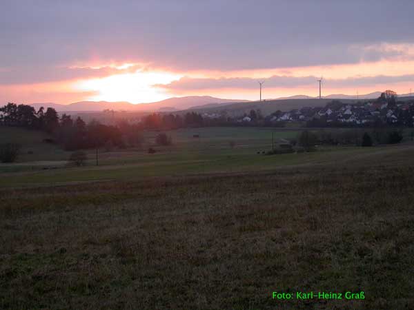 Auf der Rückfahrt kam tatsächlich noch einmal ein bißchen die Sonne hervor, die ich zuvor beim fotografieren so vermisst hatte. Das Bild zeigt Ernsthausen südlich des Burgwaldes.