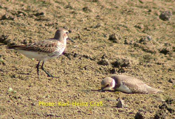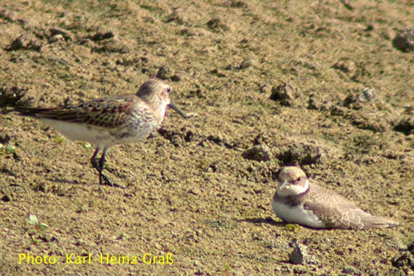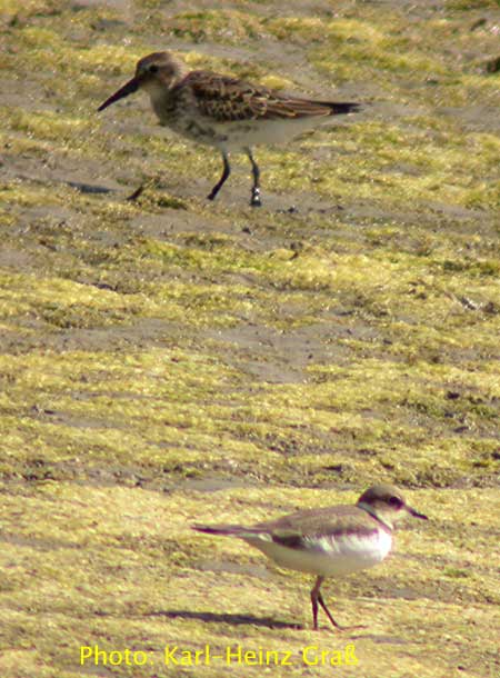 Alpenstrandläufer (oben) und Flußregenpfeifer