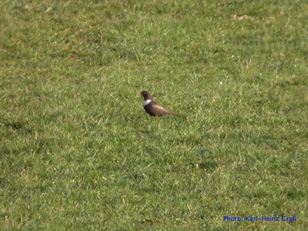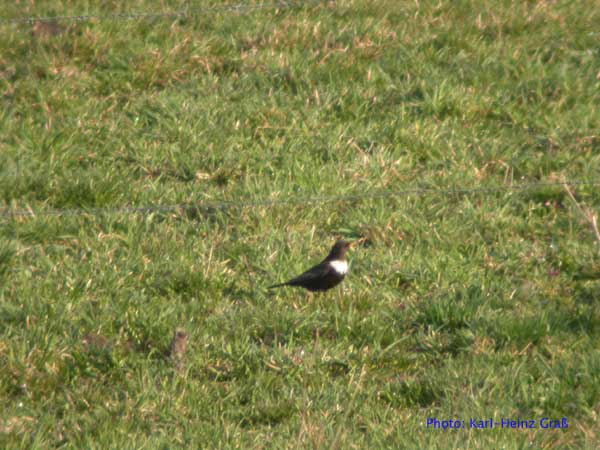 Mit Beginn des Aprils gilt es in höhergelegenen Gebieten auf Wiesen und Weiden nach Ringdrosseln Ausschau zu halten. Nach einem Hinweis von Alfred Gottmann aus Benkhausen / Gemeinde Diemelsee gelangen mir ein paar Aufnahmen dieser Art. Eine Woche später waren wir mit einer kleinen Gruppe "Untermainer" im Westerwald, wo uns Ralf Busch zu Rastplätzen führte. Auch dort konnten wir Ringdrosseln beobachten. Allerdings bei hundsmiserablem Wetter.