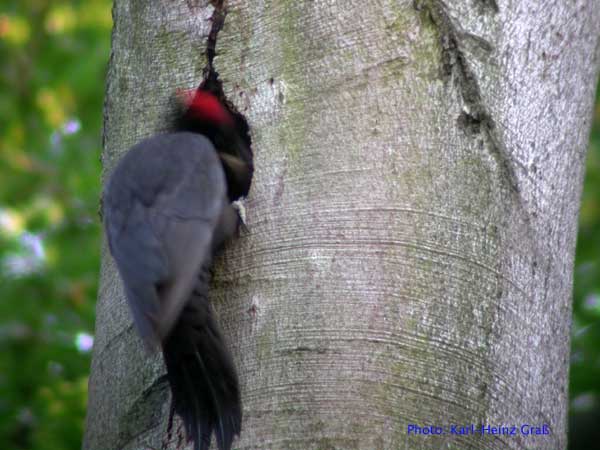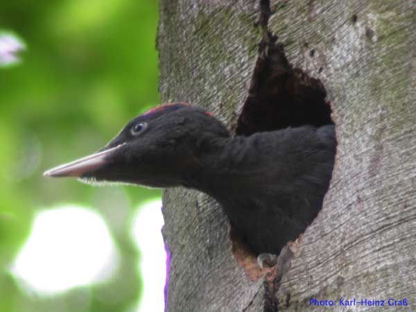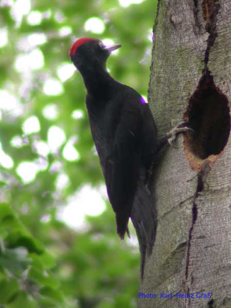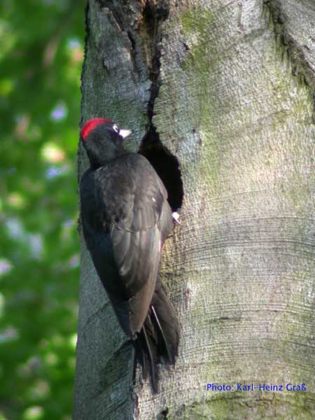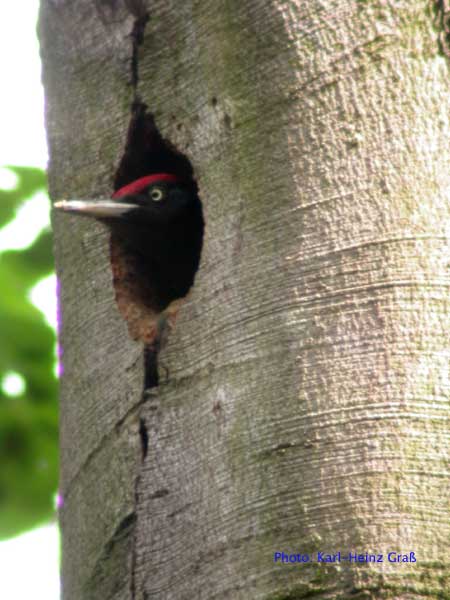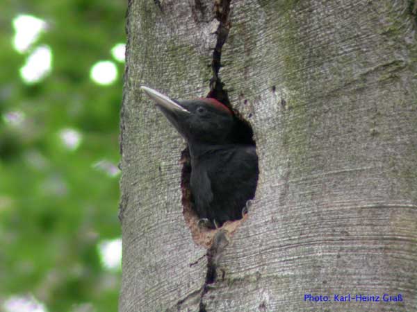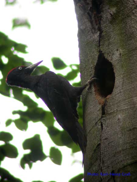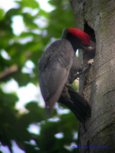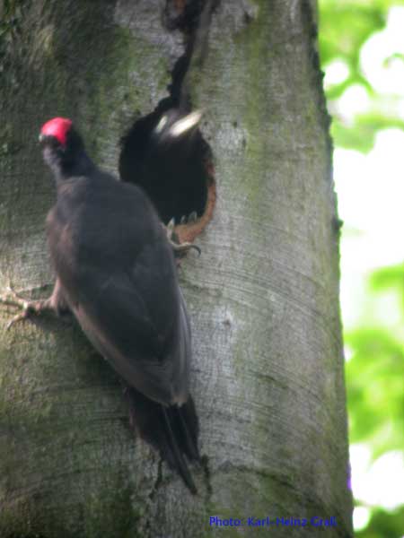 Im Mai 2004 hatte ich das große Glück, Schwarzspechte an der Bruthöhle zu fotografieren. Der Hinweis, wo sich die Höhle befand kam von Josef Buchner aus Frankfurt, der die Vögel beim Bruthöhlenzimmern beobachtet hatte.