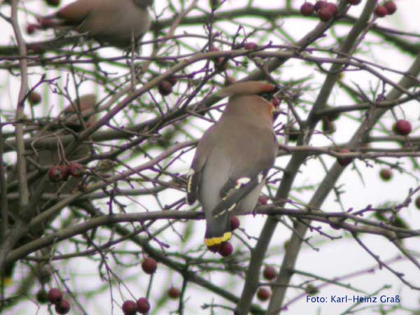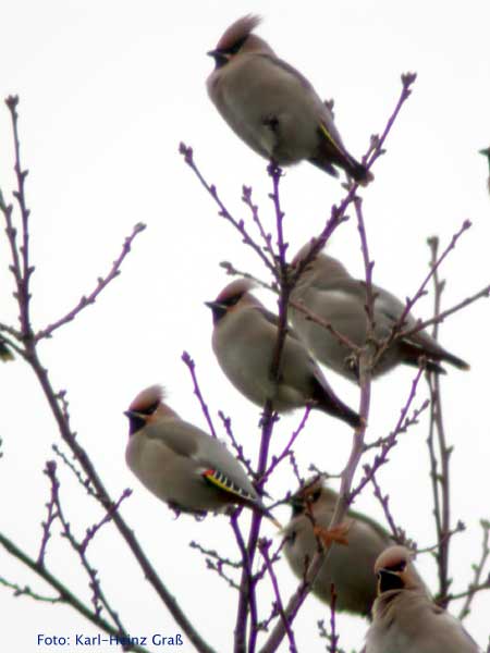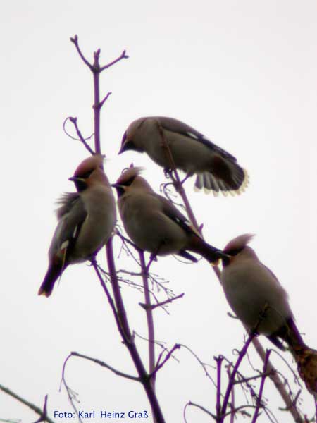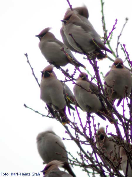 Auf eine Meldung von Peter Erlemann, der im birdnet von ca. 300 Seidenschwänzen an der B 8 zwischen FFM-Höchst und Königstein berichtet hatte, bin ich am 1. Weihnachtstag auch dorthin, in der Hoffnung noch welche anzutreffen. Ich hatte Glück. Wie beschrieben waren etliche der schönen Vögel kurz vor der Ausfahrt Kelkheim/Bad Soden zu sehen. leider war das Wetter nicht so schön, sodass die Fotos etwas trist geworden sind. Aber dennoch.....