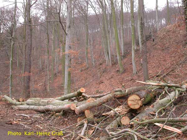 Das was jetzt kommt, kennt man eigentlich besser aus Hessen. Aber auch die Pfälzer üben sich im Abholzen. Interessanterweise war der Holzeinschlag (Buchen & Eichen) mitten im NSG. Keine Ahnung wie das zusammengeht!?