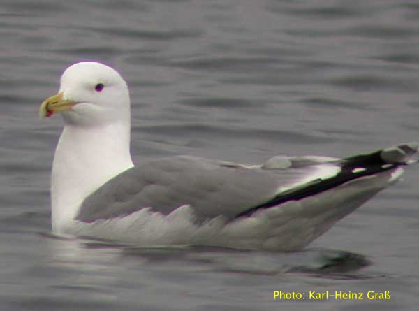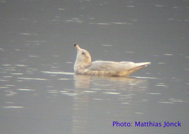 "Der Laacher See ist Schlafplatz für Möwen. Es schlafen zur Zeit wohl knapp 2500 Möwen. Die Hälfte davon sind Großmöwen, die sich leider oft über die 330ha Wasserfläche verteilen. ....auch heute Nachmittag war die Eismöwe wieder unter den vielen Großmöwen am Laacher See zu entdecken. Heute konnte ich sie allerdings auf etwas kürzere Entfernung und bester Beleuchtung beobachten. Sie ist nicht wie ich erst gemeldet habe K3, sondern schon K4. Möglicherweise die selbe Eismöwe wie vom Urmitzer Werth vom Jan-März 2006".