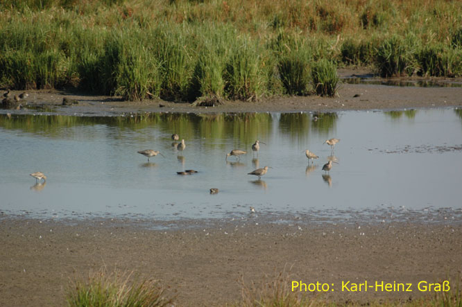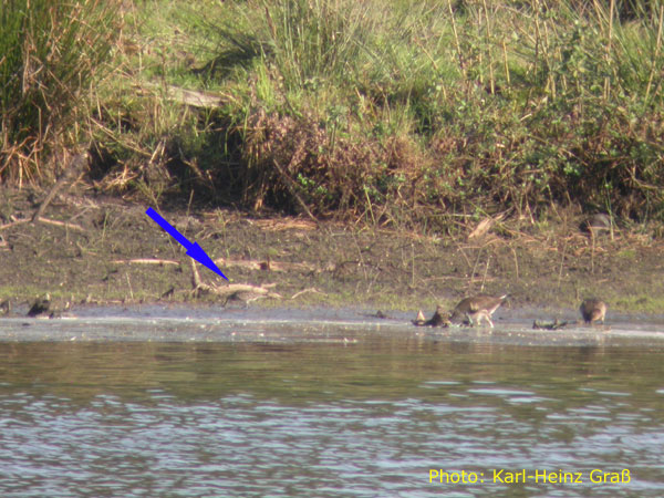 Auf diesem Bild ist der Sumpfläufer nur sehr schlecht zu erkennen. er ist sowieso nur schwer vom Alpenstrandläufer zu unterscheiden, wenn man beide Arten nicht mal nebeneinander beobachten konnte.