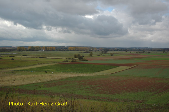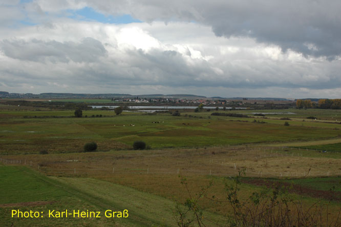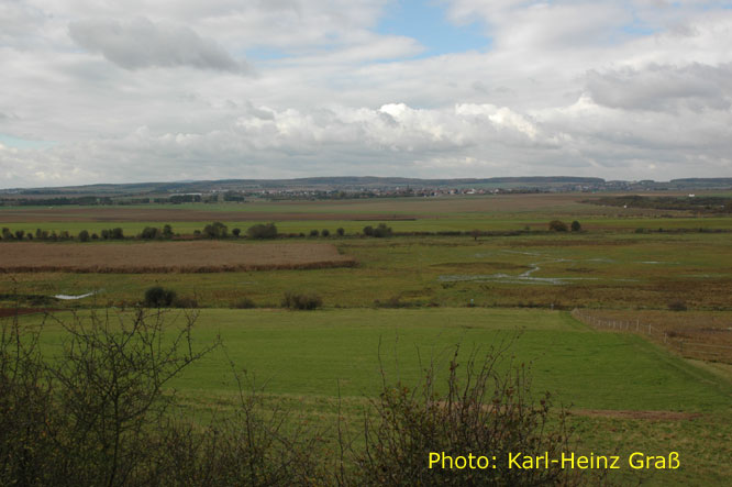 Das Gebiet südlich des Sees mit dem Ort Berstadt im Hintergrund