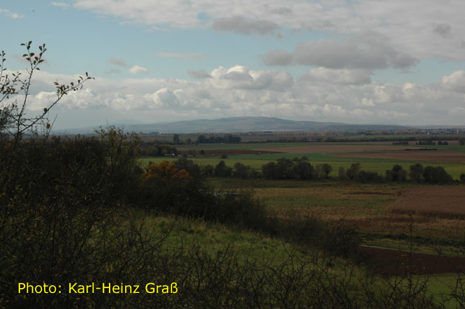 Und schließlich ein Blick in Südwestliche Richtung zum Taunus mit dem Sendemasten. Links im Hintergrund nur schwach erkennbar: Der Feldberg!