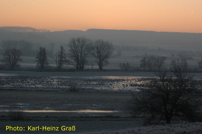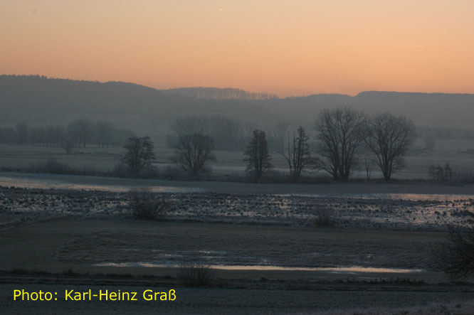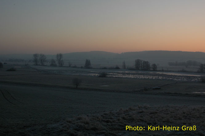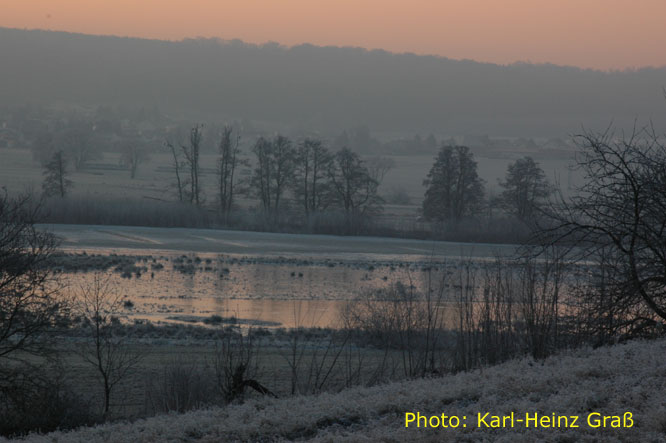 Auf dem Weg zum Knappensee ist ein sehr schönes Feuchtgebiet an der A 45 zwischen Altenstadt und Florstadt. Besonders wenn die Sonne aufgeht ist das Gebiet im Gegenlicht sehr stimmungsvoll.