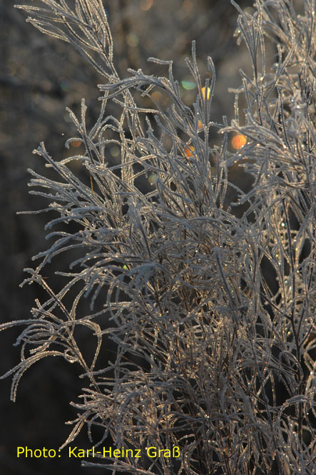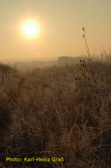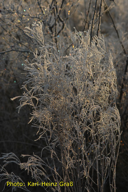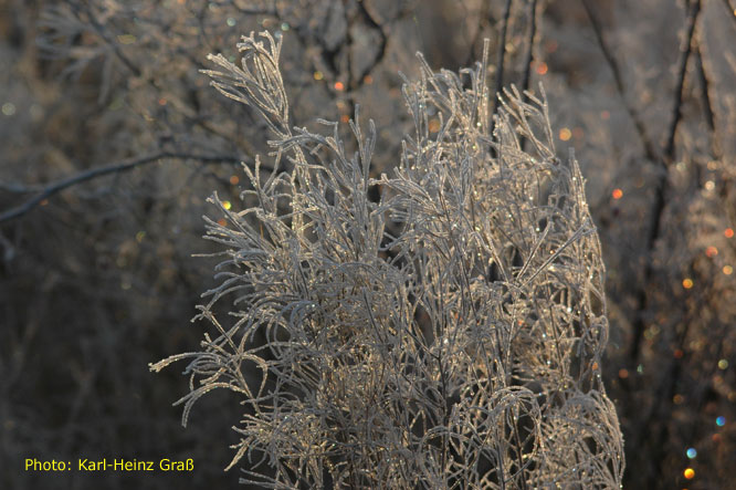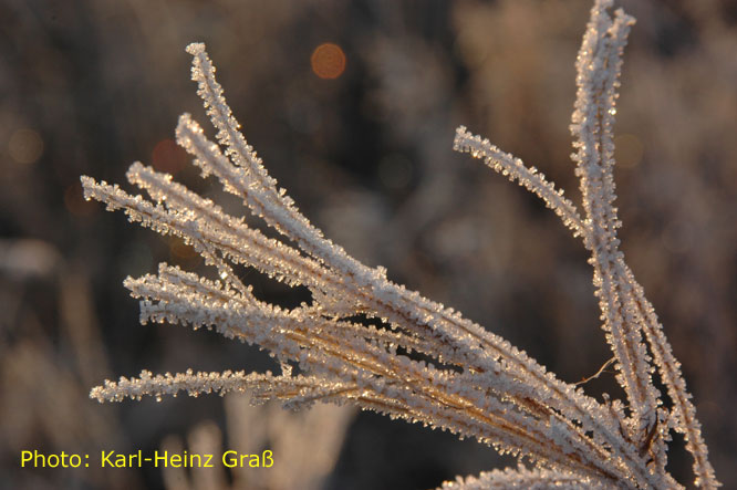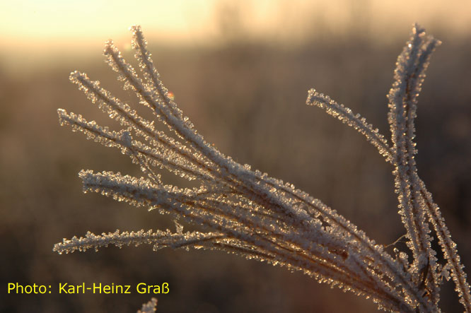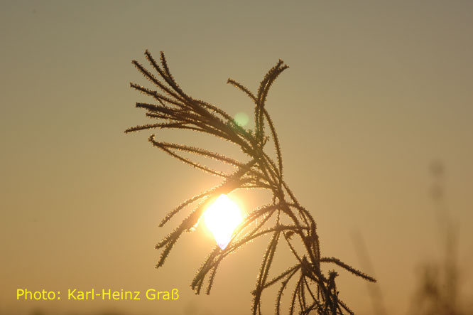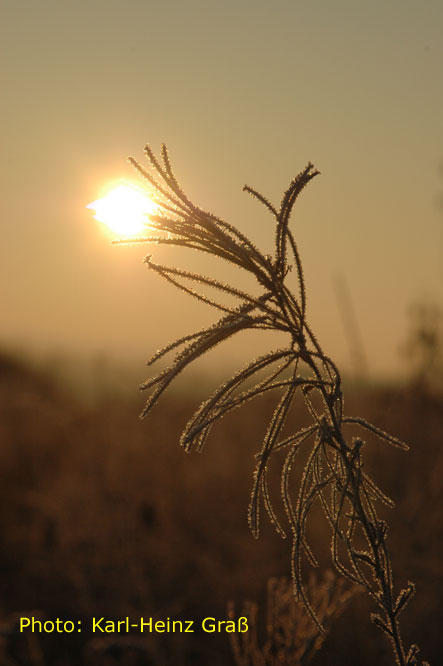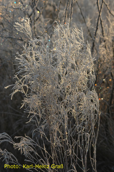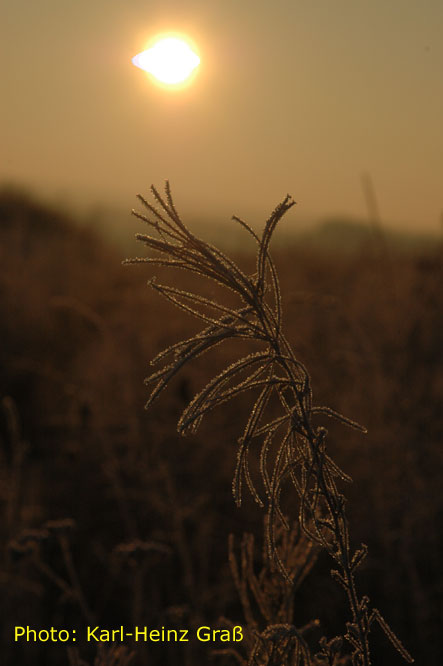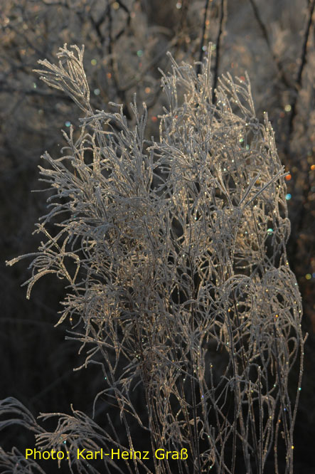 Der Samstag vor Weihnachten war noch einmal vom Wetter her sehr schön: Sonnig und kalt. Überall war Reif auf den Halmen, der in der Sonne farbig glitzerte.