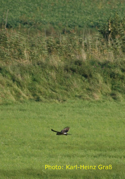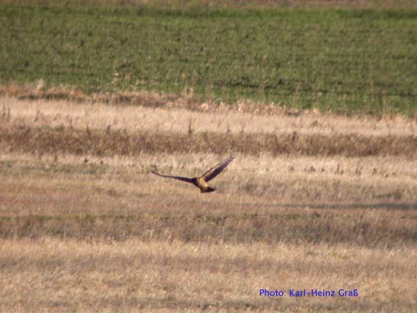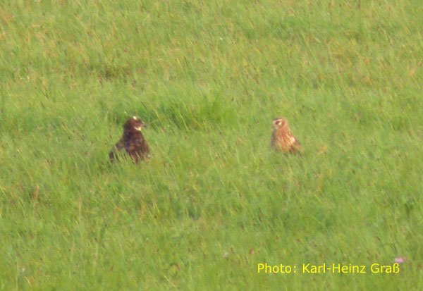 dto. - der linke Vogel war nicht eindeutig zu identifizieren. Möglicherweise eine atypisch gefärbte Rohrweihe.