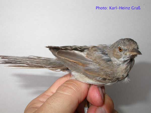 Berger Hang - August 2007 - "nicht diesjährige", weibliche Dorngrasmücke, allerdings mit atypischer Färbung.