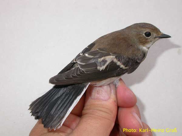 Trauerschnäpper: Erstfang: 26.08.2006 Ringnummer: 9C57346 diesjährig (3)