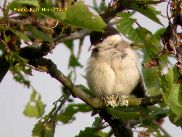 Diese Sumpfmeise hat am Berger Hang (Mai 2005) in einem hohlen Baum gebrütet und füttert jetzt....