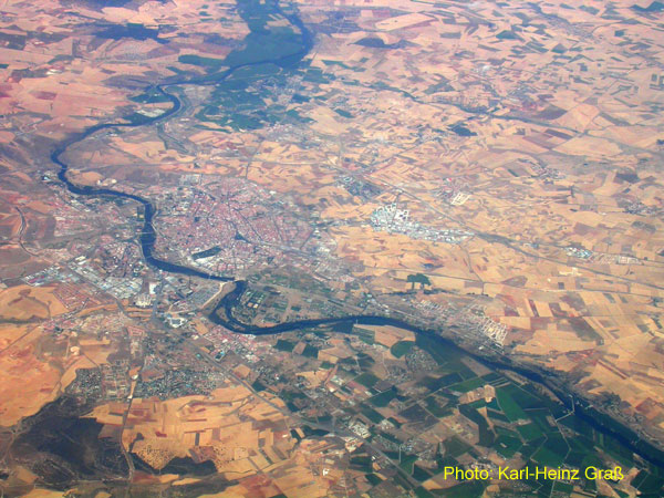 .... wo man hier Salamanca und den Rio Tormes sieht. Weiter ging der Flug nach Portugal, südlich von Lissabon der Küstenlinie folgend.