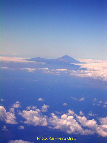 Im Hintergrund zu sehen: Der Teide (3718 m) auf Teneriffa. Links daneben der Pico Viejo  (3106 m). Nach einem Zwischenstop auf Gran Canaria (nach   4 1/2 Flugstunden), wo die Maschine mit Passagieren aufgefüllt wurde - viele Cobo Verdianer arbeiten auf den Kanaren und fliegen im Sommer in die Heimat - ging es schließlich nach Sal, einer Insel im Nordosten des Archipels mit dem internationalen Flughafen. Um 16:00 Ortszeit (19:00 MEZ) kamen wir dort an. Knapp 2 Std. dauerte der Stop auf Gran Canaria, sodass die reine Flugzeit etwa 6 1/2 Stunden betrug.