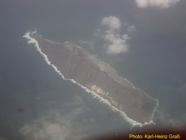 Hier zu sehen ist die Insel Branco, die westliche Nachbarinsel von Raso, wo noch einige wenige Paare der berühmten Rasolerche  brüten.