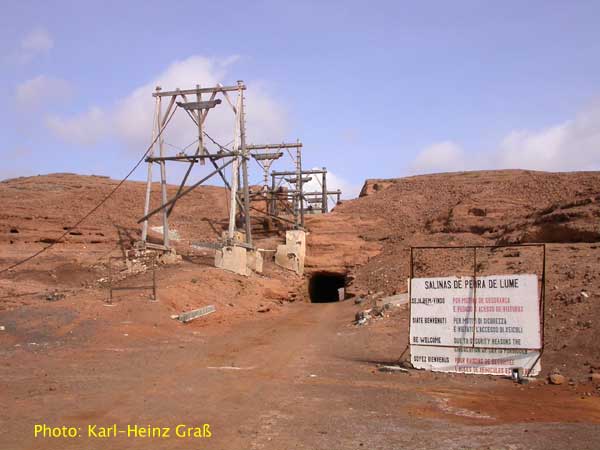 Am letzetn Urlaubstag - dem Freitag - hab ich noch eine Tour nach Pedra da Lume (westlich vom Flughafen) unternommen, zur dortigen Saline, die sich im Krater eines ehemaligen Vulkanes befindet. Hier ist der Zugang - früher wurde das Salz über diese Transportanlage zum Meer transportiert.