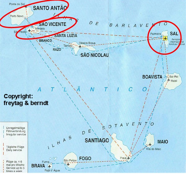 Die beiden letzten Urlaubstage brechen an: Am Donnerstag, 18.08.05 geht unser Flieger - wie gehabt mit Verspätung - nach Sal. Hier haben wir noch bis Freitag abend. Gegen 22:00 soll es zurückgehen nach München. Die Übernachtung auf Sal haben wir diesmal in Santa Maria, im Süden der Insel - direkt am Meer gebucht........