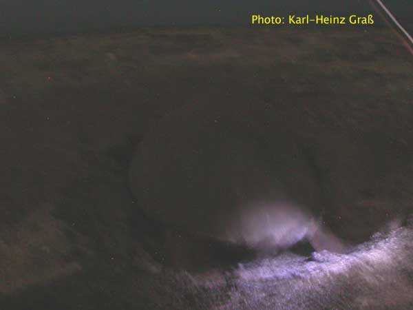 Als nächstes wurden wir eingehend darüber informiert, wie wir uns zu verhalten haben, wenn wir eine Schildkröte beobachten, ohne dass sie bei der Eiablage gestört wird. Absolut verboten ist zusätzliche Beleuchtung - also Taschenlampen und vor allem: NO FLASH!!!!!!! Außerdem muß man sich hinter dem Tier positionieren, weil es einen so nicht bemerkt.
