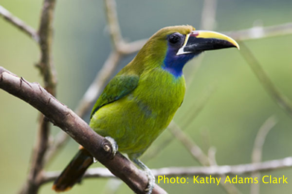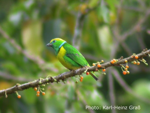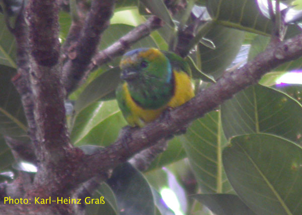 Eine sehr schöne Beobachtung hatten wir auch vom "Emerald Toucanet" (Laucharassari) (Aulacorhynchus prasinus), da er aber zu quirlig war, gelang leider kein schönes Foto. Im Internet fand ich aber ein sehr schönes, was ich nachfolgend einbaue. Ich hoffe, die Eignerin hat nichts dagegen. Hab sie leider per email nicht erreicht: