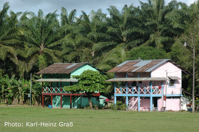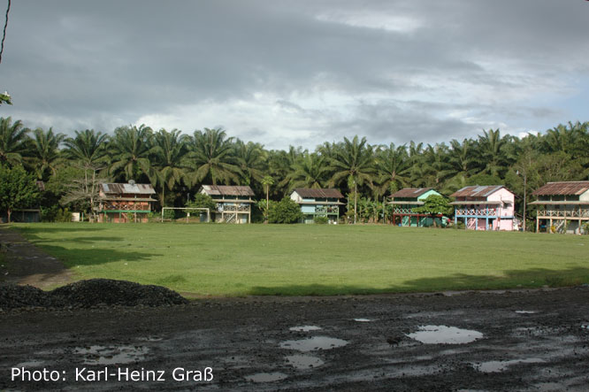 42 km waren wieder Piste angesagt. Das heißt: Schlaglöcher ohne Ende. Die Strecke wird nämlich gut von riesigen Trucks befahren. Dabei liegen wunderschöne kleine Ortschaften, die in dieser Gegend so aussehen wie hier, an der Straße.