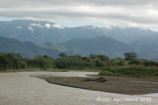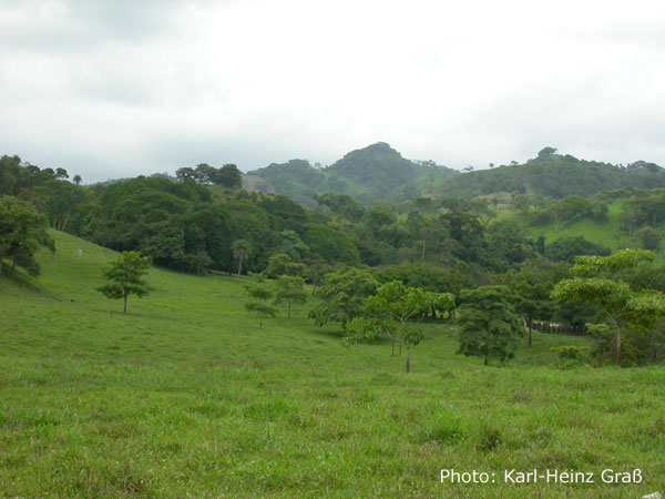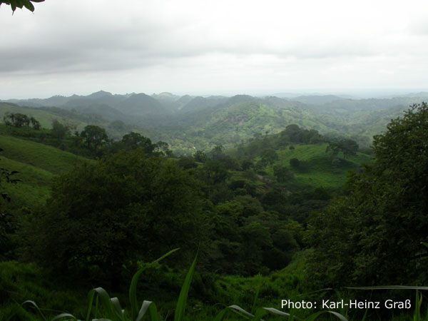 Hier ein Blick zu den Bergen. Dort hinter liegt die Panamericana - etwa auf Höhe des Cerro de la Muerte