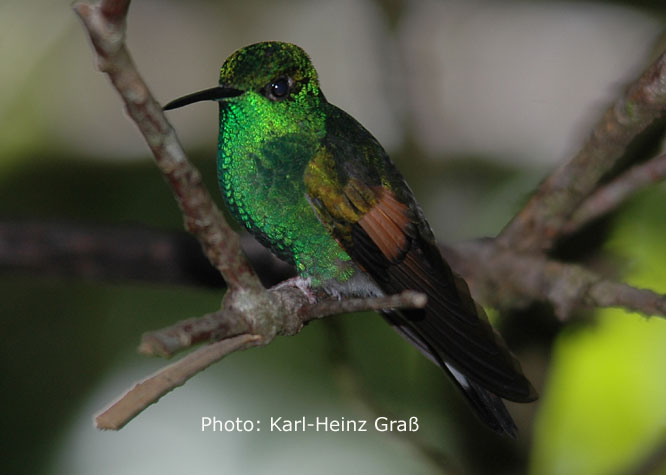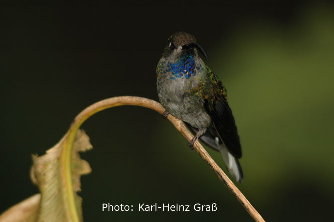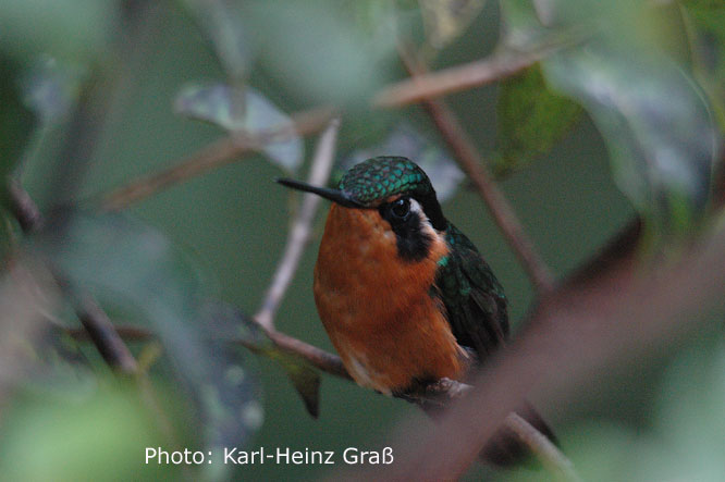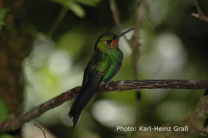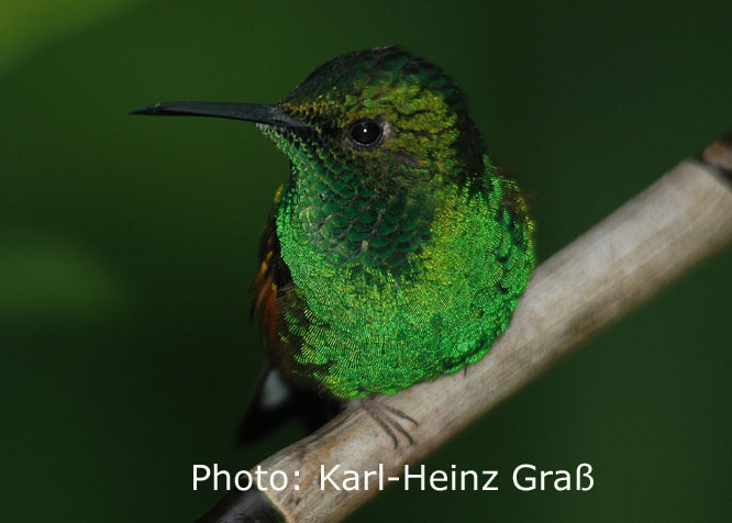 Die mit 6,5 cm Länge (2,5 g Gewicht) kleinste in Costa Rica vorkommende Art, das Schneekrönchen (Snowcap) haben wir leider, leider nicht gesehen.