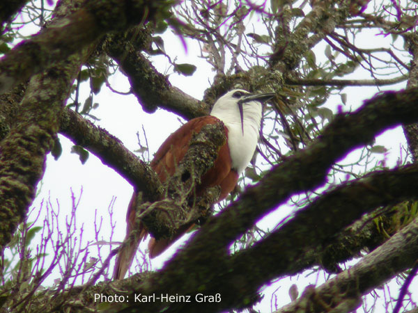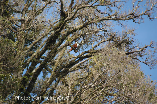 Ein Blick in die Baumkronen ist in dieser Region sehr wichtig, weil hier ein ganz besonderer Vogel zu sehen ist (wenn man Glück hat)...