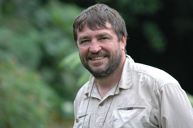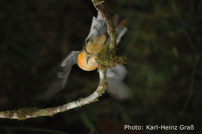 Dann ein Highlight: Raphael zeigte uns einen "Bellbird". Dieser Vogel ruft in einer Weise, die einem lauten Glockenklang ähneln, den ganzen Tag über von morgens bis abends. Zu Gesicht bekommt man ihn jedoch nicht so leicht, weil er sich sehr hoch in den Baumkronen aufhält.