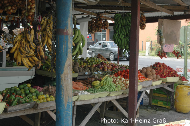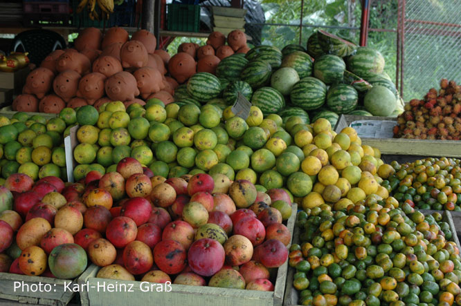 Häufig sieht man am Straßenrand leckere Obst- und Gemüsestände....