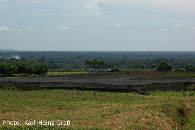 Weil noch Zeit war, bin ich kurz entschlossen noch nach Westen gefahren in Richtung Bribri. Dort liegt das Centro Bocuare, ein privates Naturreservat. Ursprünglich wohl ein Hof bzw. eine Farm.