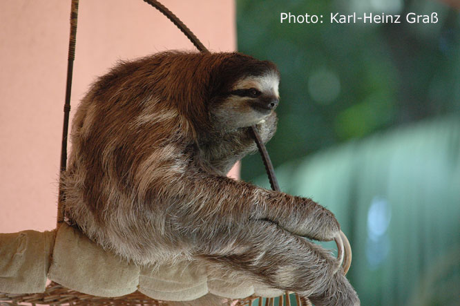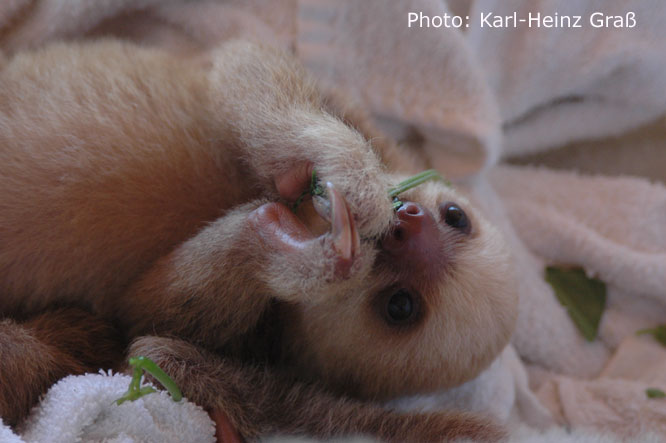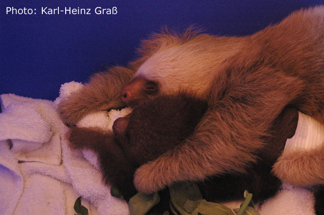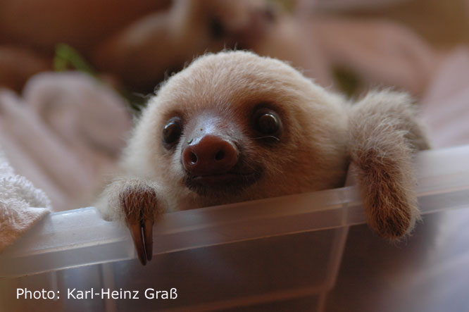 Hier sind verwaiste Faultiere. Wenn sie von ihren Müttern getrennt werden - beispielsweise, indem sie vom Baum fallen - haben sie nahezu keine Überlebenschance. Man versucht, die Tiere soweit möglich, wieder auszuwildern, was aber nicht immer möglich ist.