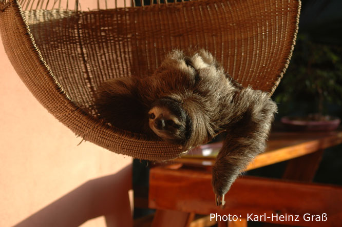 Draußen im Gelände war dann sogar ein "wildes" Faultier. Ein Dreifinger - Faultier!