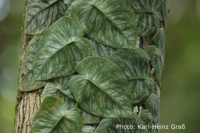 Schattenblätter - eine Anpassungsform der Laubblätter an schattige Standorte - dies Art könnte "Monstera sp." eine Lianenart sein. Früher zählte man die Gattung Monstera zur Gattung "Philodendron" der sie ähnlich sieht. Inzwischen bezeichnet sie aber eine eigene Gattung.
