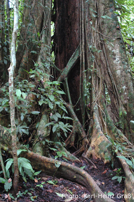 Armdicke Lianen hängen von manchen Baumriesen hinab