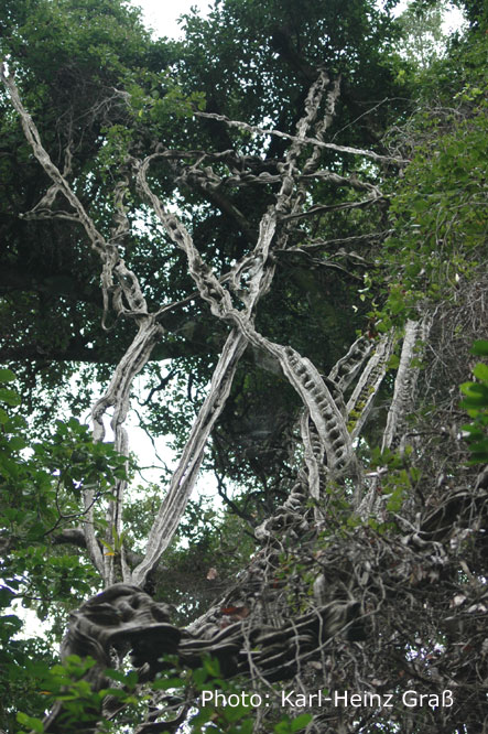Es war eine fantastische Wanderung! Wir haben noch viel mehr erlebt: Termiten gekostet (sind essbar; schmecken nussartig!); "Saft" vom "Kaugummibaum" probiert; den innen hohlen und häufig von Ameisen bewohnten Kanonenbaum gesehen; Pfeffer gerochen (der "weibliche" Pfeffer riecht nach Anis); den "Sanddosenbaum" mit seinen rasselnden Früchten gesehen; Palmen mit Stacheln ("Give and Take") gesehen: Verletzt man sich an den Stacheln, kann man ein Antiseptikum aus den Blättern der Palme gewinnen); Blüten gesehen, die man auspressen kann um frisches Trinkwasser zu bekommen, eine Palme gesehen, die am Unteren Stamm Stacheln hat, die nach unten gebogen sind und darüber Stacheln, die nach oben gebogen sind (optimaler Schutz) ..........