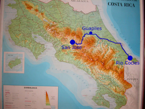 Die Fahrt von Rio Cocles zum Hotel bei Alajuela dauerte 5 Stunden (210 km).