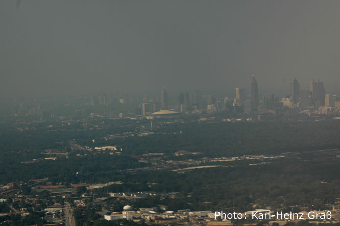 Um 17:00 waren wir dann in der Luft. Hier ein Blick auf Atlanta. Anschließend verhinderten weitgehend dichte Wolken schöne Ausblicke wie beim Hinflug.