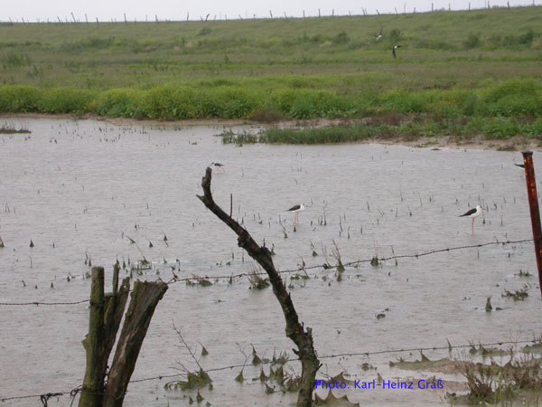 ...nach einem Regen bilden sich Wasserflächen auf Weiden und Feldern. Hier rasten Limikolen, wie z.B. Sandregenpfeifer (Chorlitejo grande)...