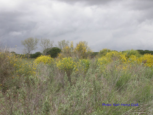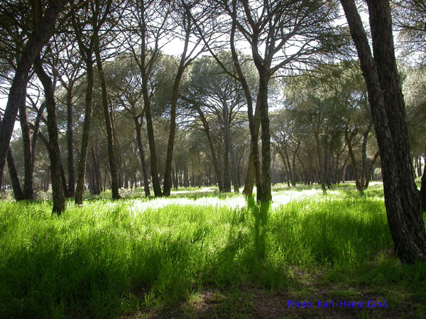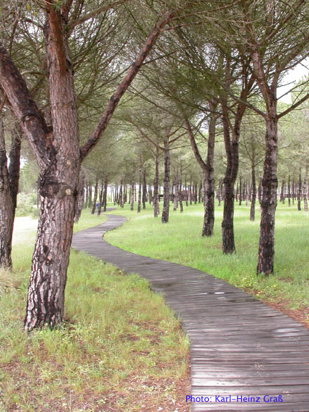 Direkt gegenüber von El Rocio, westlich der Straße liegt der Fluss La Rocina. Nach überqueren der "Canariega-Brücke" geht es gleich nach links auf einen großen Parkplatz. Direkt anschließend kommt man in das Nationalpark-Infozentrum. Das NSG liegt südlich des Flusses und ist über Plankenwege zugänglich. Diese Wege führen zu 1a Beobachtungsständen (ähnlich gute Stände habe ich in Deutschland noch kaum gesehen).
