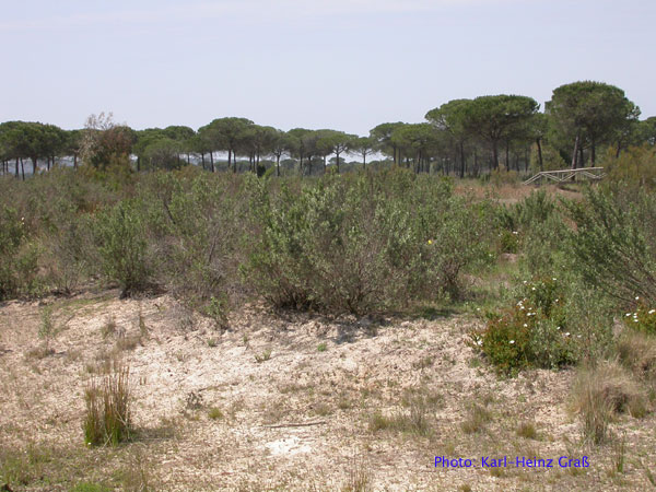 Fährt man von El Rocio in südliche Richtung (nach Matalscanas) kommt man kurz vor dem Abzweig nach Huelva zu einem weiteren, ebenfalls westlich der Straße liegendem, NSG: Acebuce. Auch hier gibt es ein Naturpark - Infozentrum, von dem aus man auch wieder zu einer ganzen Reihe von Beobachtungsständen gelangt. Hier gibt es sowohl ein großes Feuchtgebiet als auch eine Trockenlandschaft.