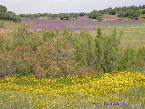In der Nähe von Villamanrique de la Condesa ist ein weiteres interessante NSG: Dehesa de Abajo. Dort befindet sich die größte Kolonie baumbrütender Störche Europas. Auch ein See ist dort, wo wir unberingte Kammbläßhühner fanden.