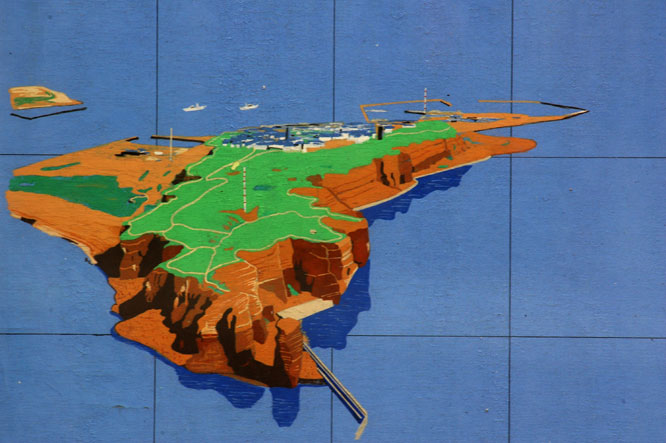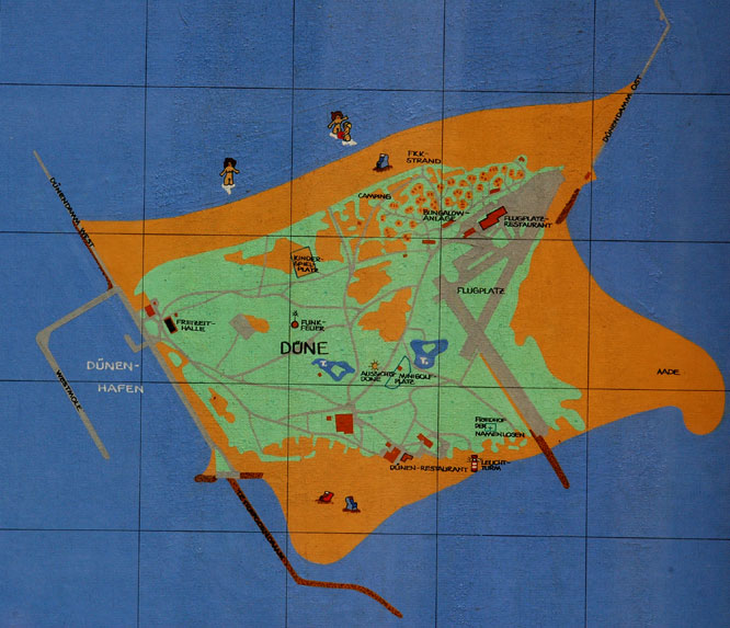 Diese Strukturen auf dem Oberland sind Bombenkrater. Ziel der Engländer war es nach dem Krieg, den Felsen zu sprengen, wozu Tonnenweise Bomben abgeworfen wurden. Auch in den Katakomben wurden große Mengen an Sprengstoff zur Detonation gebracht. Glücklicherweise ohne Erfolg.