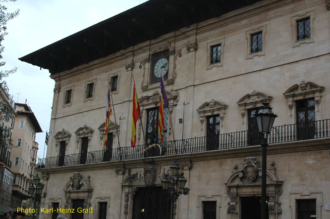 Das "Ajuntament" (Rathaus) von Palma stammt aus dem 17. Jh. und zeigt den Übergang vom Manierismus zum Barock.