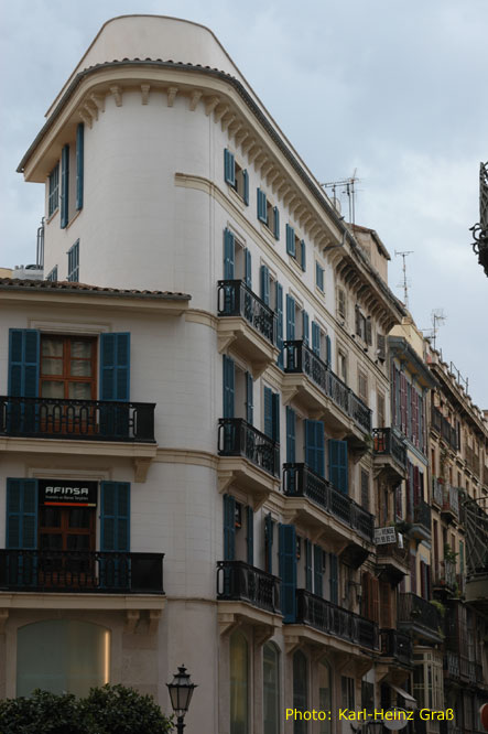 Diese Häuser stehen an der Carrer Colom, einer Einkaufsstraße, die zur Placa Major führt.