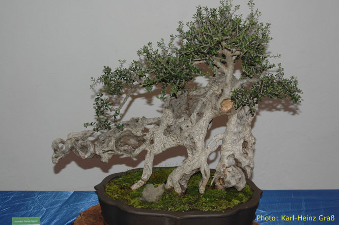 Auf der anderen Straßenseite im Innenhof eines ebenfalls repräsentativen Gebäudes war eine hübsche Bonsai - Ausstellung zu sehen.