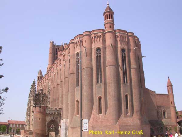 Hier ist das Palais de la Berbie, zu sehen, in dem heute das Museum de Toulouse - Lautrec untergebracht ist. Dieser Bau grenzt direkt an die Kathedrale an. Im Museum darf man leider wie üblich nicht fotografieren. Deshalb gibt`s von den Gemälden keine Fotos.