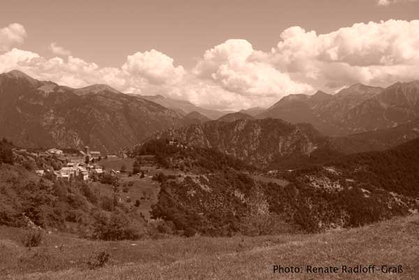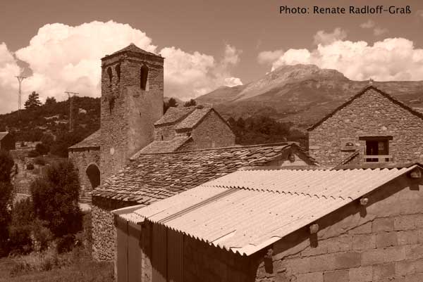 In der Bildmitte - diesmal von Westen blickend - Laspuna und am rechten Bildrand die 2291 m hohe Pena Montanesa.