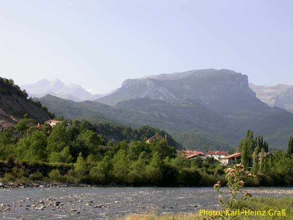 ....hier in Richtung Norden der Rio Cinca und hinten links ist der Monte Perdido....
